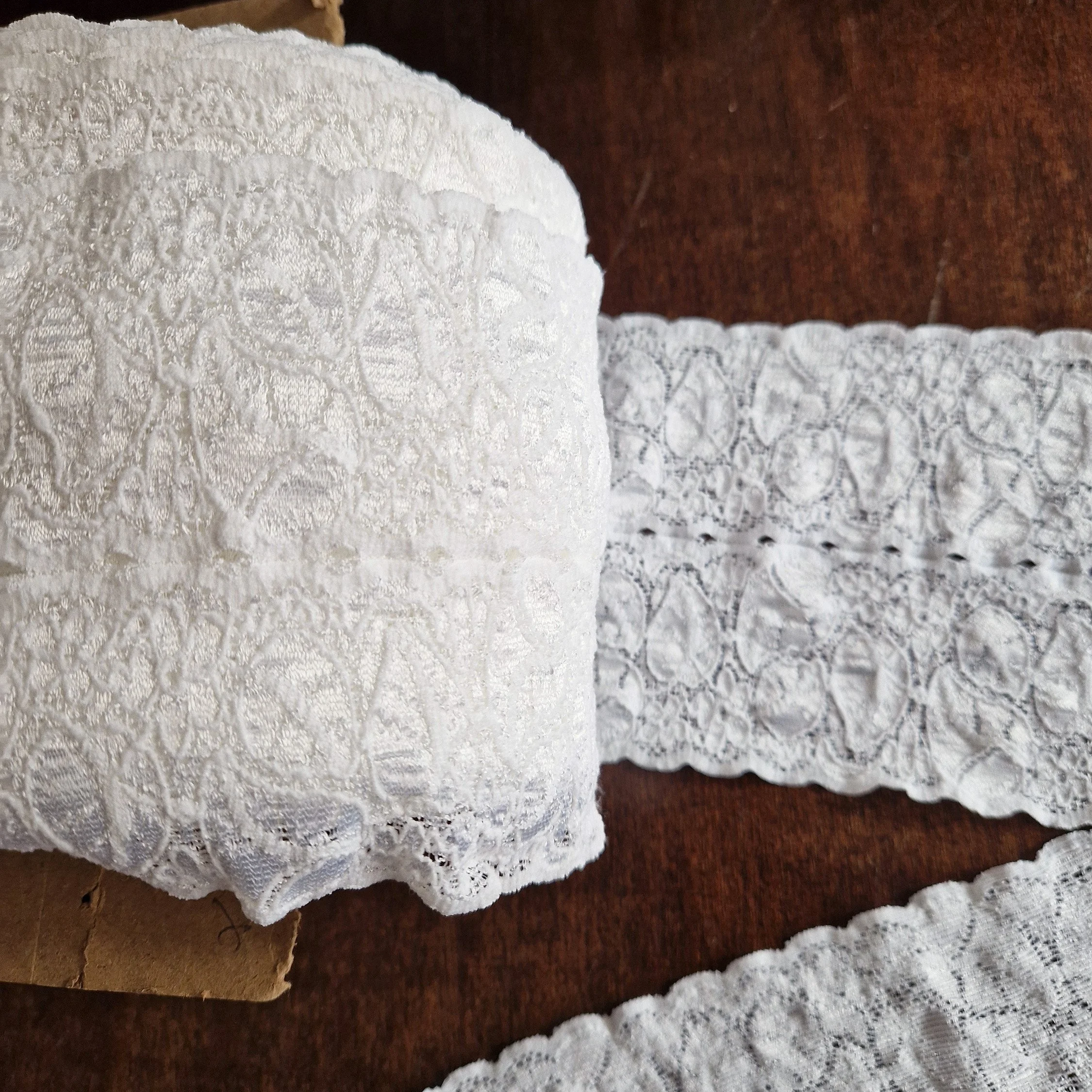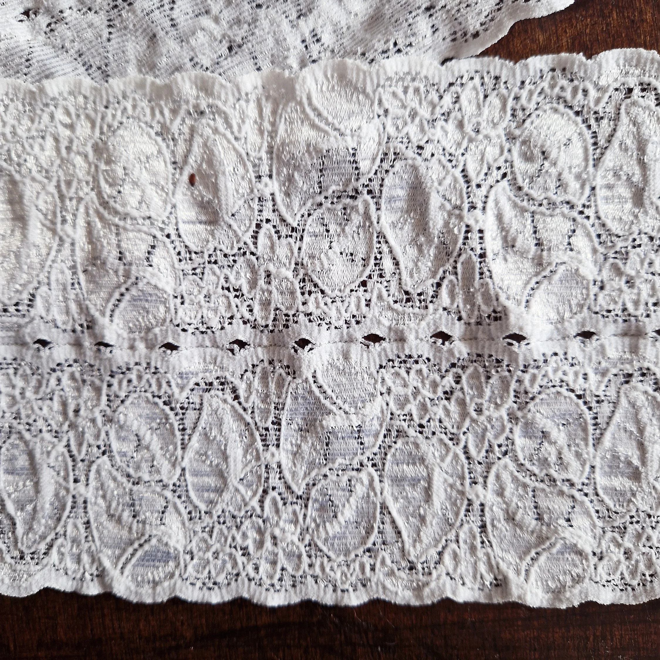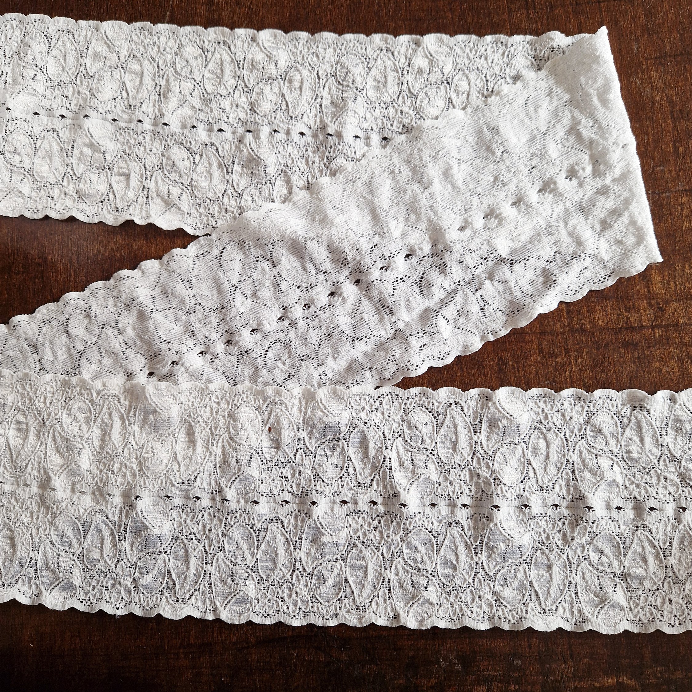 11 yards vintage white stretch lace , 4 3/4 inch (12 cm) wide