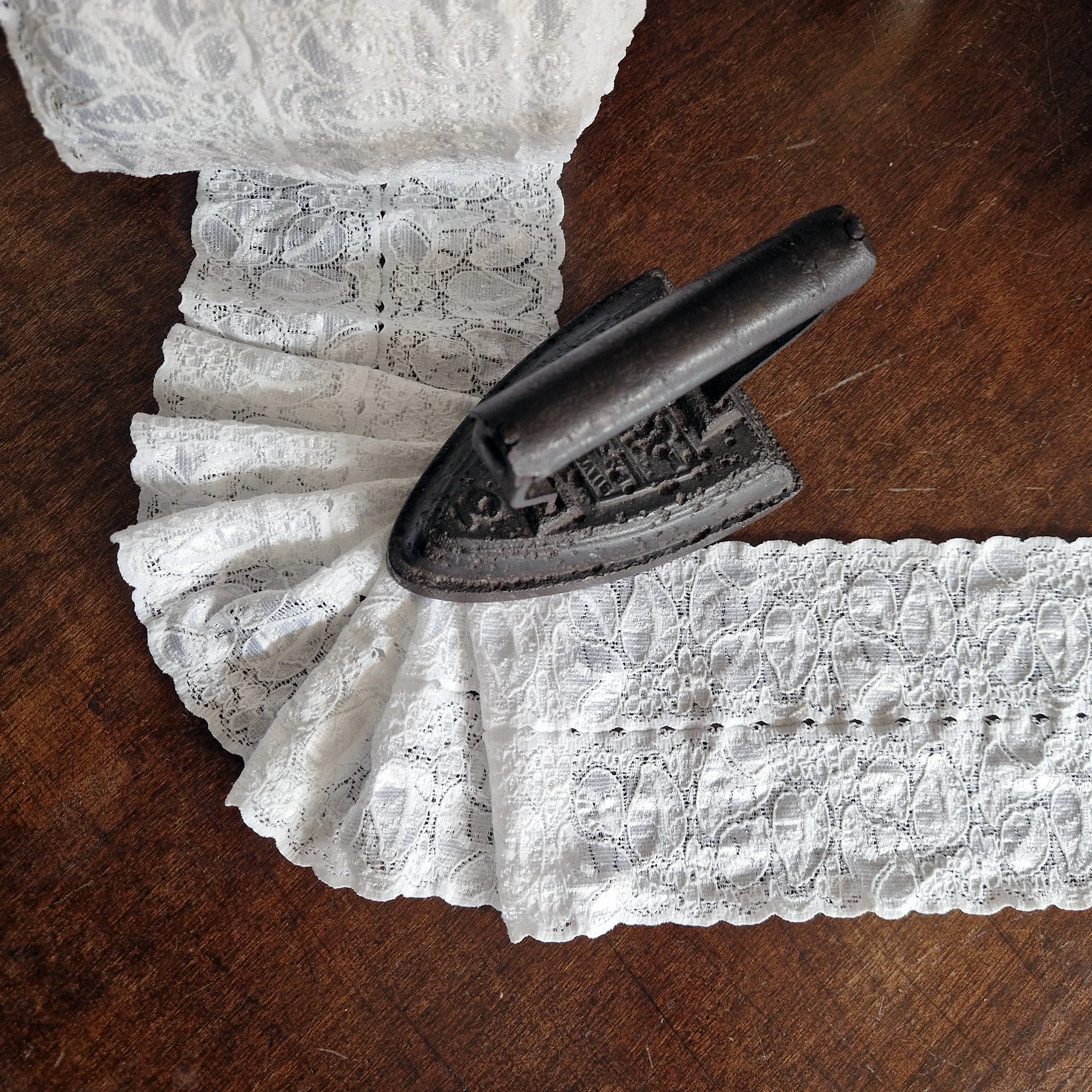 Added I sometimes have lace and fabric scraps, coming from the seasonal clearance of my work space, These are mostly remnants of my own designs, which I sell in bundles.