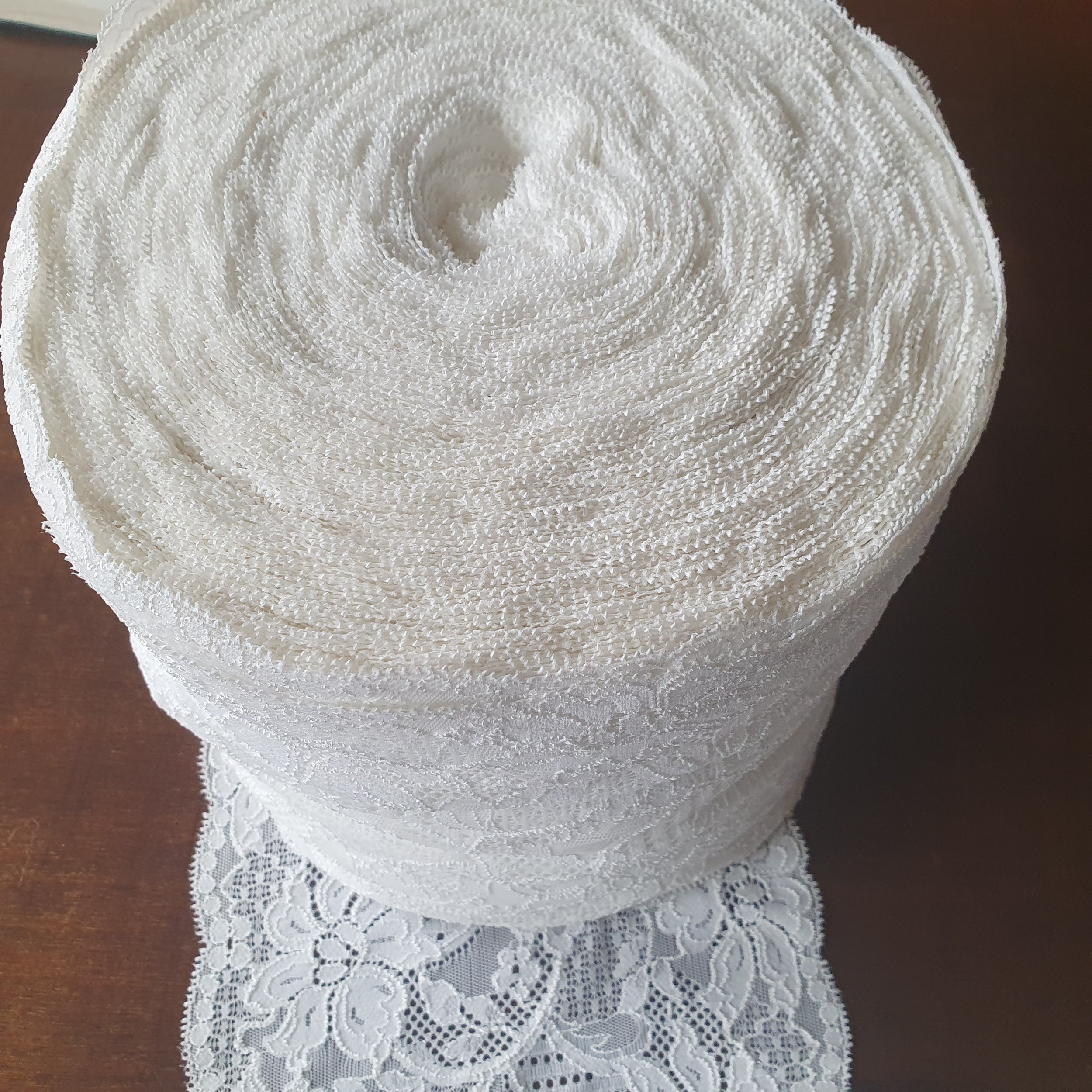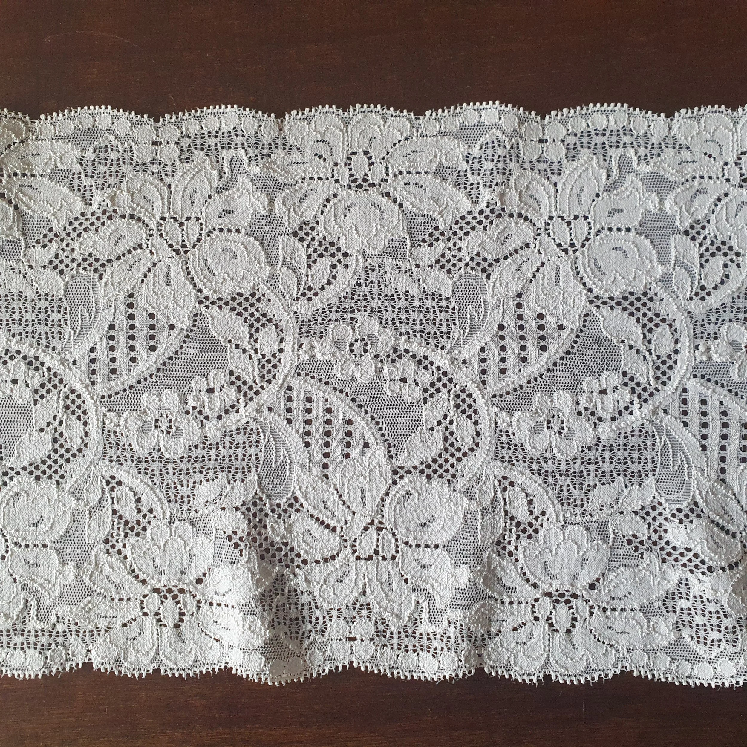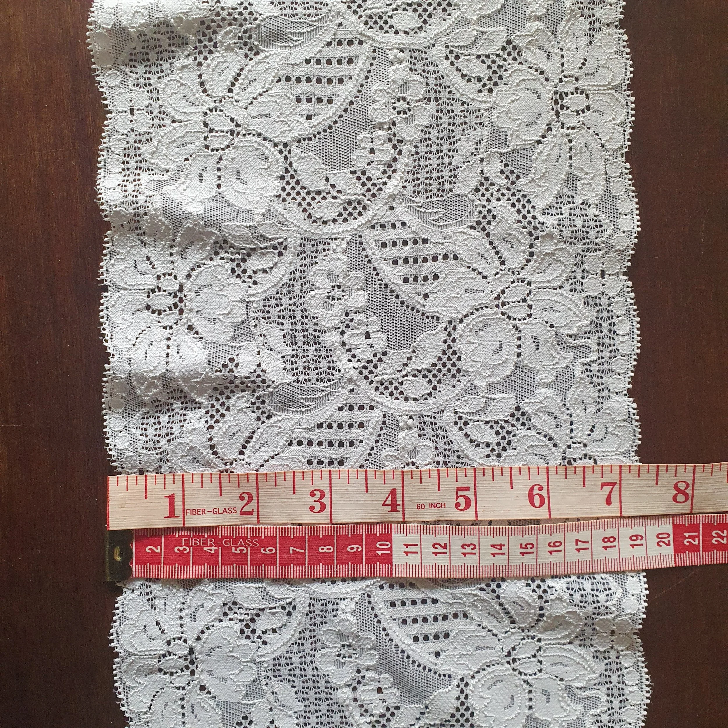 11 yards vintage white stretch lace, 7 1/4 inch (19 cm) wide
