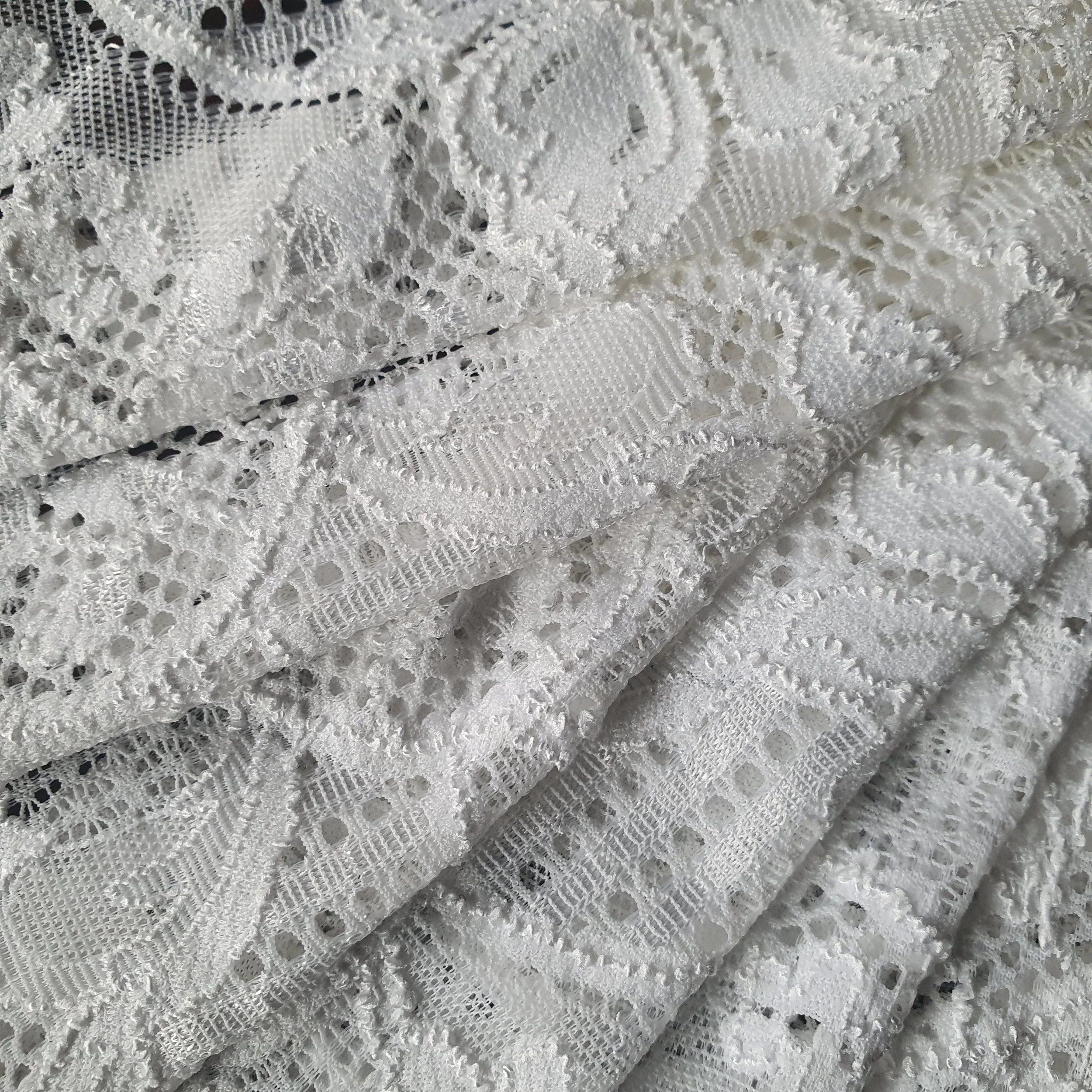This is a lovely vintage white stretch lace with floral pattern.