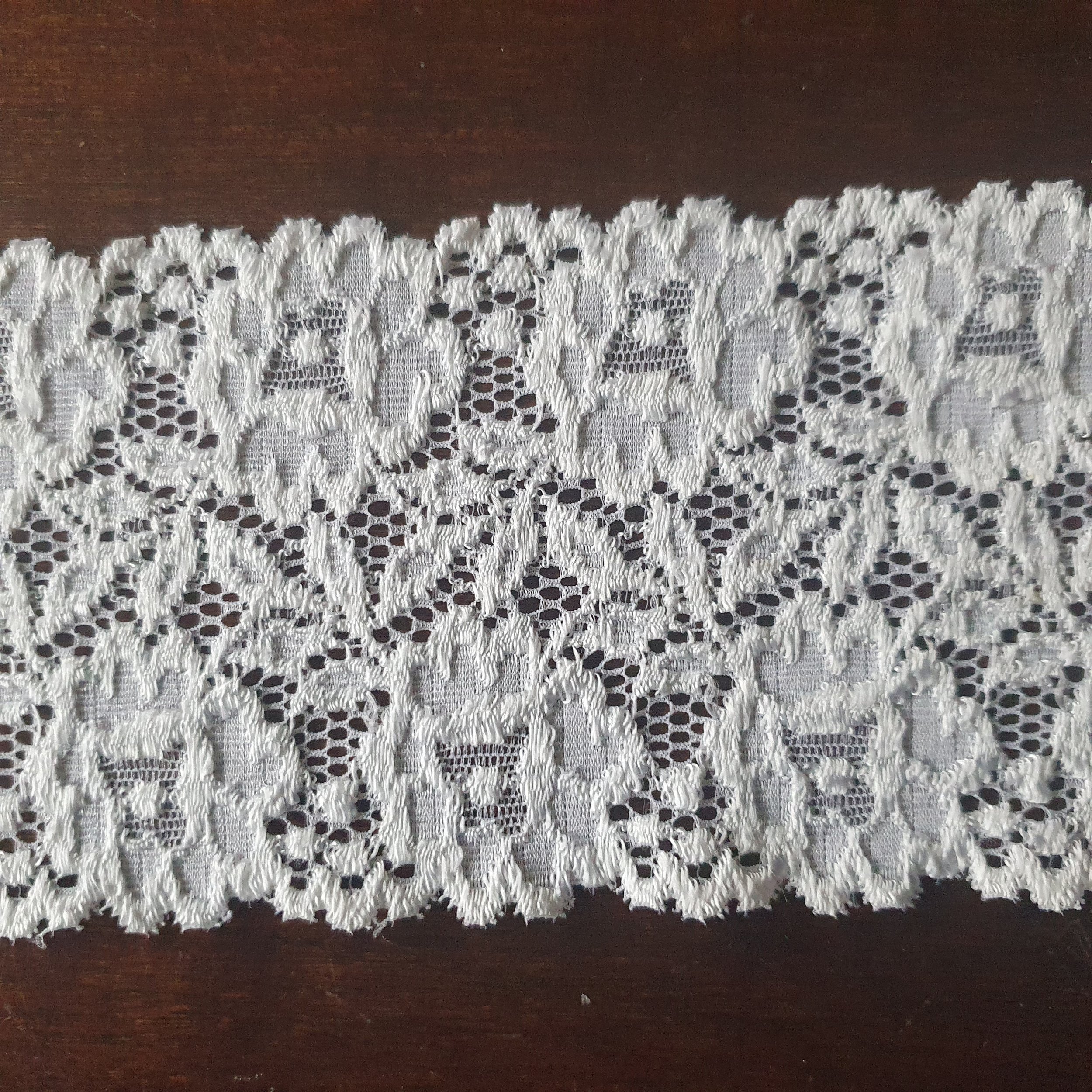 This is a lovely shiny white vintage stretch lace with floral pattern.