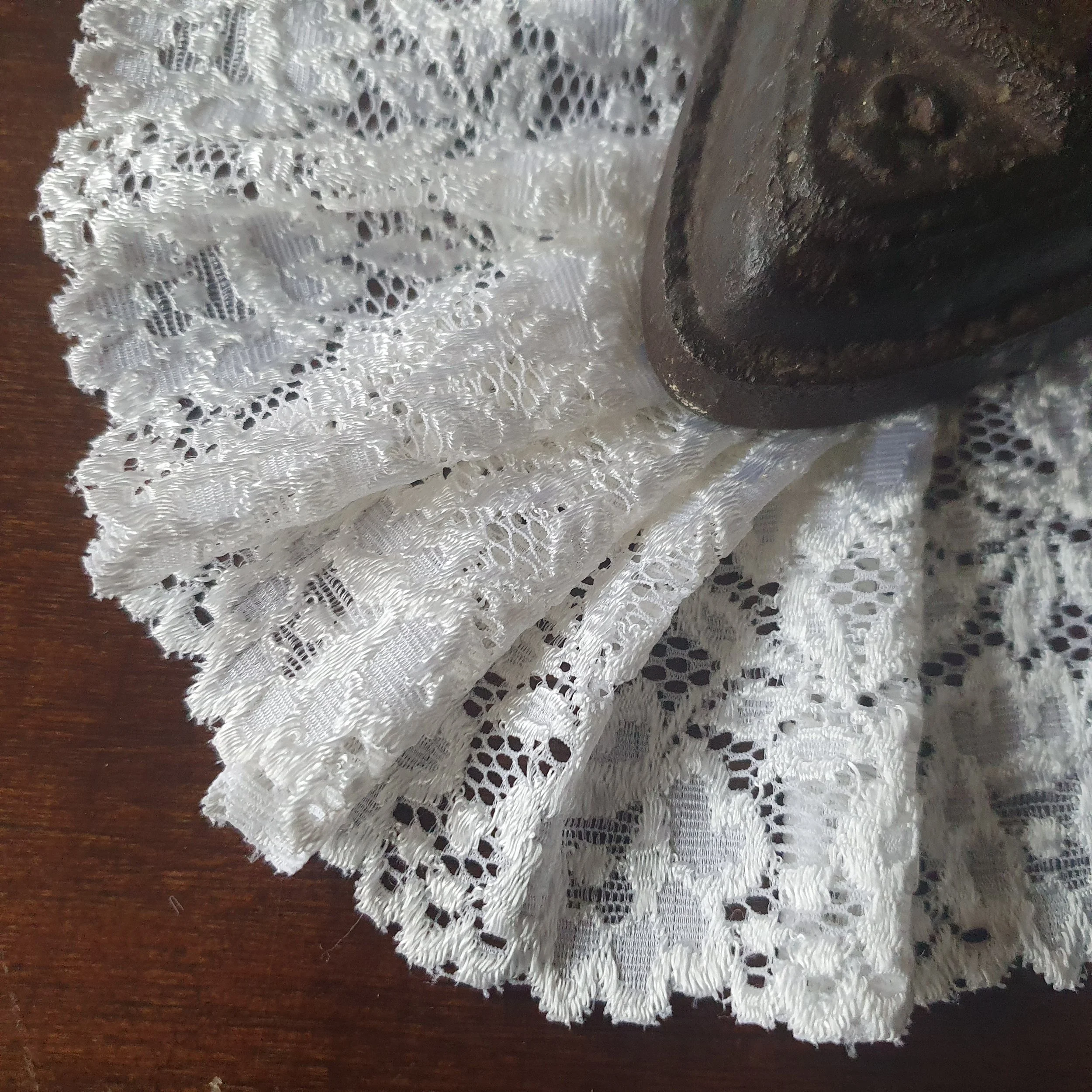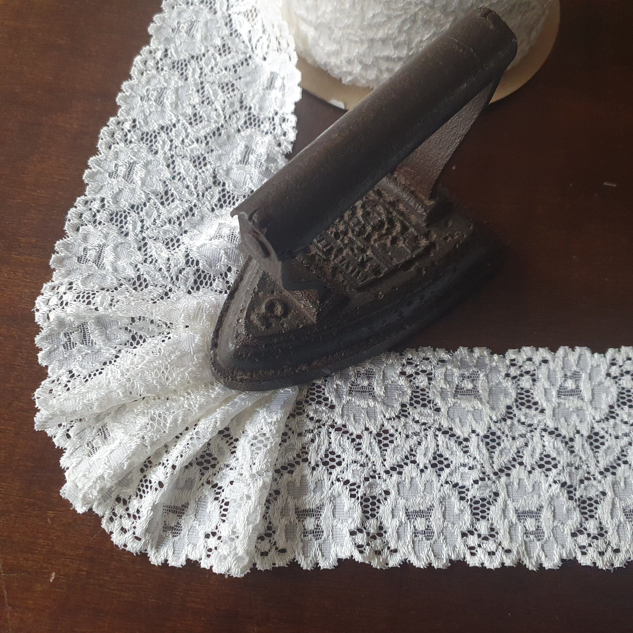 Added I sometimes have lace and fabric scraps, coming from the seasonal clearance of my work space, These are mostly remnants of my own designs, which I sell in bundles.