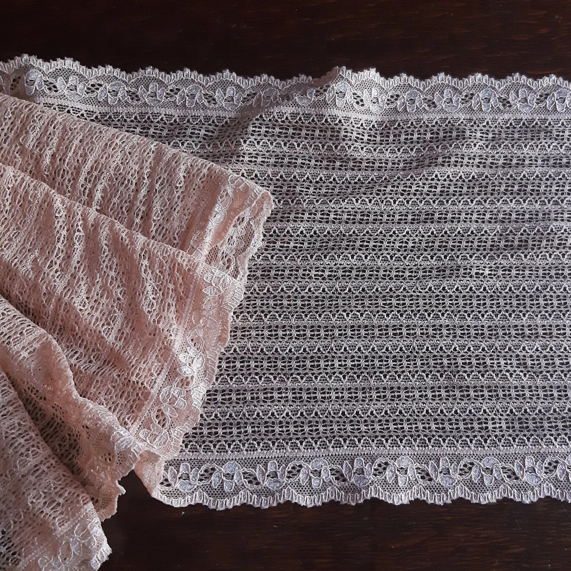 11 yards vintage lace peachy beige stretch, 6 3/4 inch (17,5 cm) wide